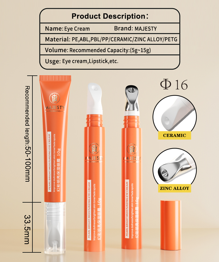 Kleinvolumen Augencreme Kunststoff leerer Röhrchen Kosmetische Hautpflege -Verpackung Keramik Applikator einfach zu verwenden OEM/ODM -Anpassungsrohr
