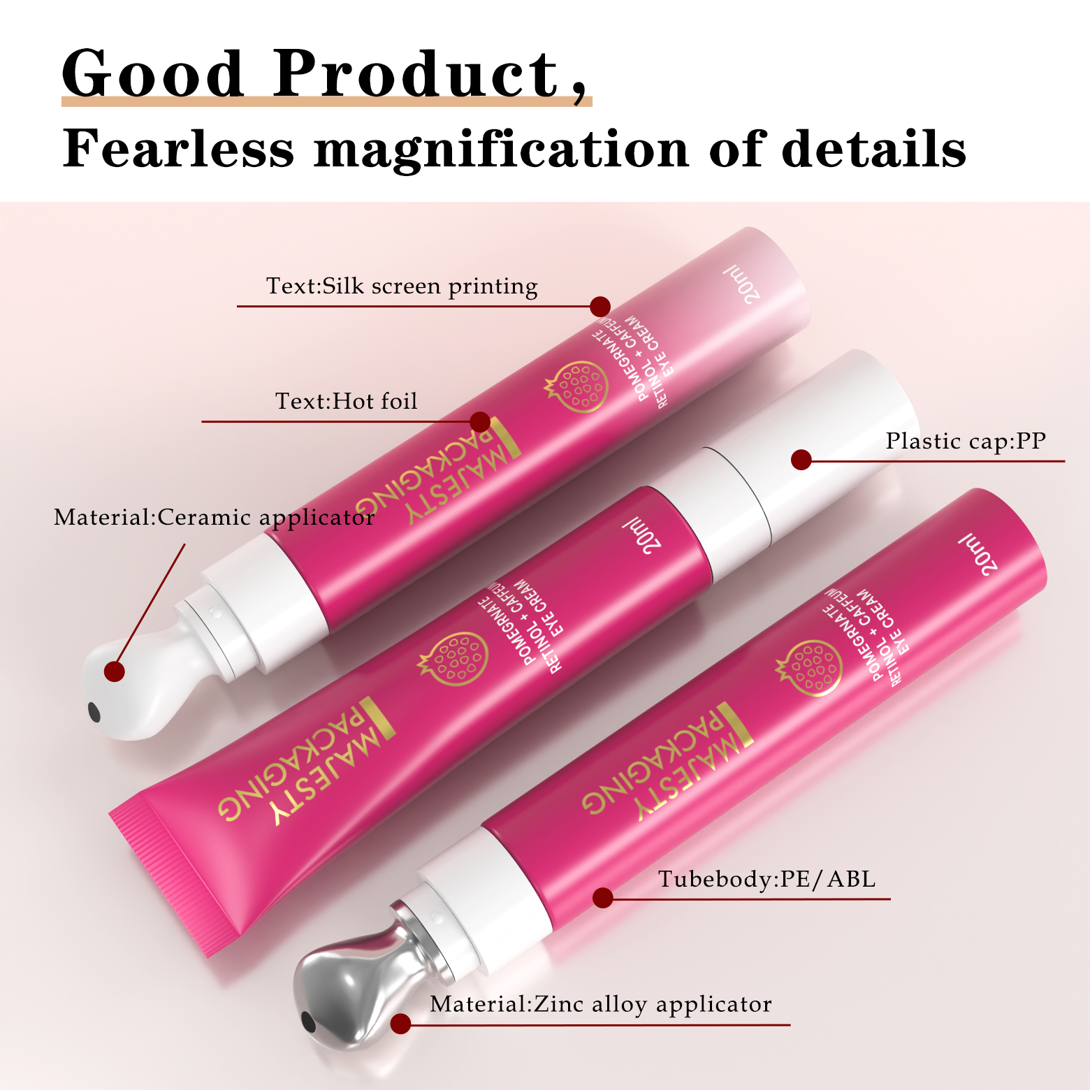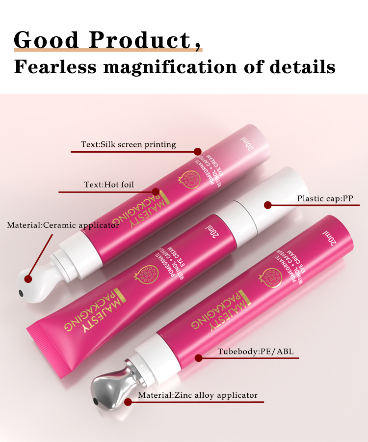 Kundenspezifische 10-ml-, 15-ml- und 20-ml-Cometic-Augencremetuben mit weichem Kopf aus Keramik und Zinklegierung, Schlauchverpackung aus Kunststofftuben für kosmetische Zwecke